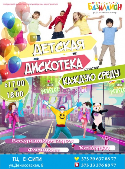 Детская дискотека с аниматором ждёт вас каждую среду в Базиллион! Базиллион подготовил для маленьких талантов специальную программу с играми, танцевальными баттлами из разных направлений. Каждый ребенок сможет проявить свой талант и индивидуальность!
